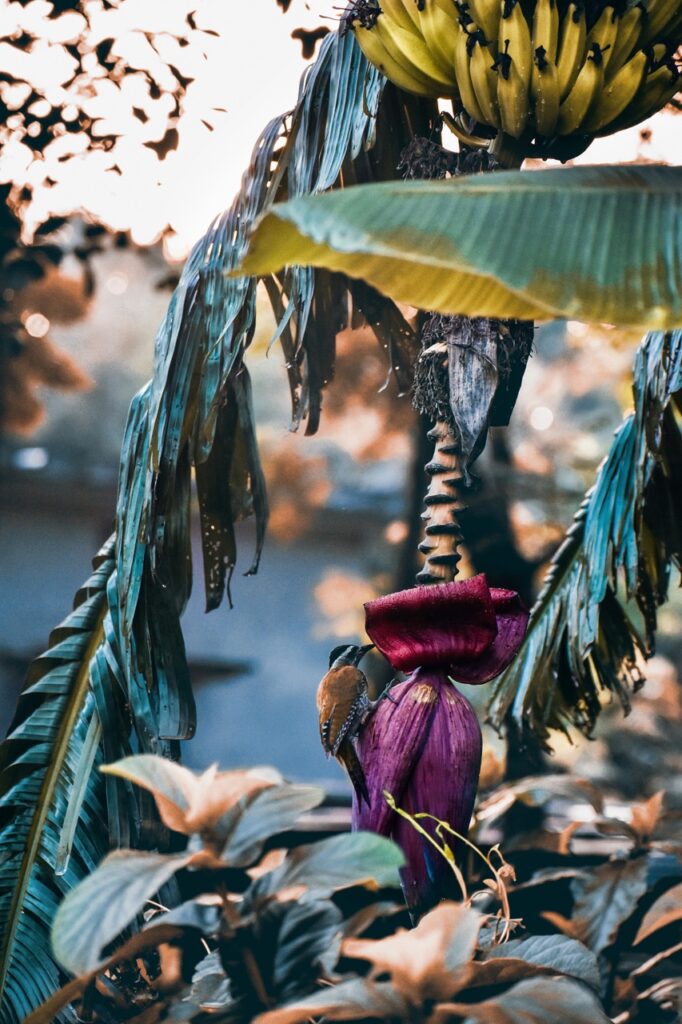 The banana tree, belonging to the genus Musa, is a fast-growing, herbaceous plant known for its large, broad leaves and clusters of nutritious fruit, thriving in tropical and subtropical climates.