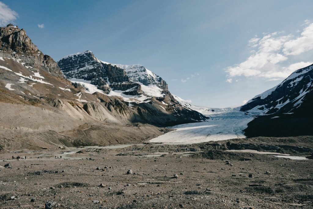 The Athabasca Glacier is one of the six principal “toes” of the Columbia Icefield, located within Jasper National Park in the Canadian Rockies. As the most visited glacier in North America, it is easily accessible from the Icefields Parkway and allows visitors to walk on its surface or take guided “Ice Explorer” tours. However, it serves as a prominent indicator of climate change, having receded more than 1.5 kilometers over the last century.