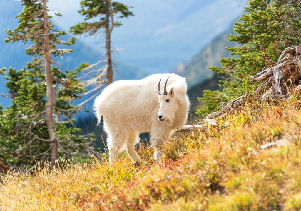 Highly adapted to steep, rocky terrain with specialized hooves for climbing. Mountain goat is native to the mountain ranges of western North America, specifically the Rocky Mountains, the Cascade Range, and other coastal regions.